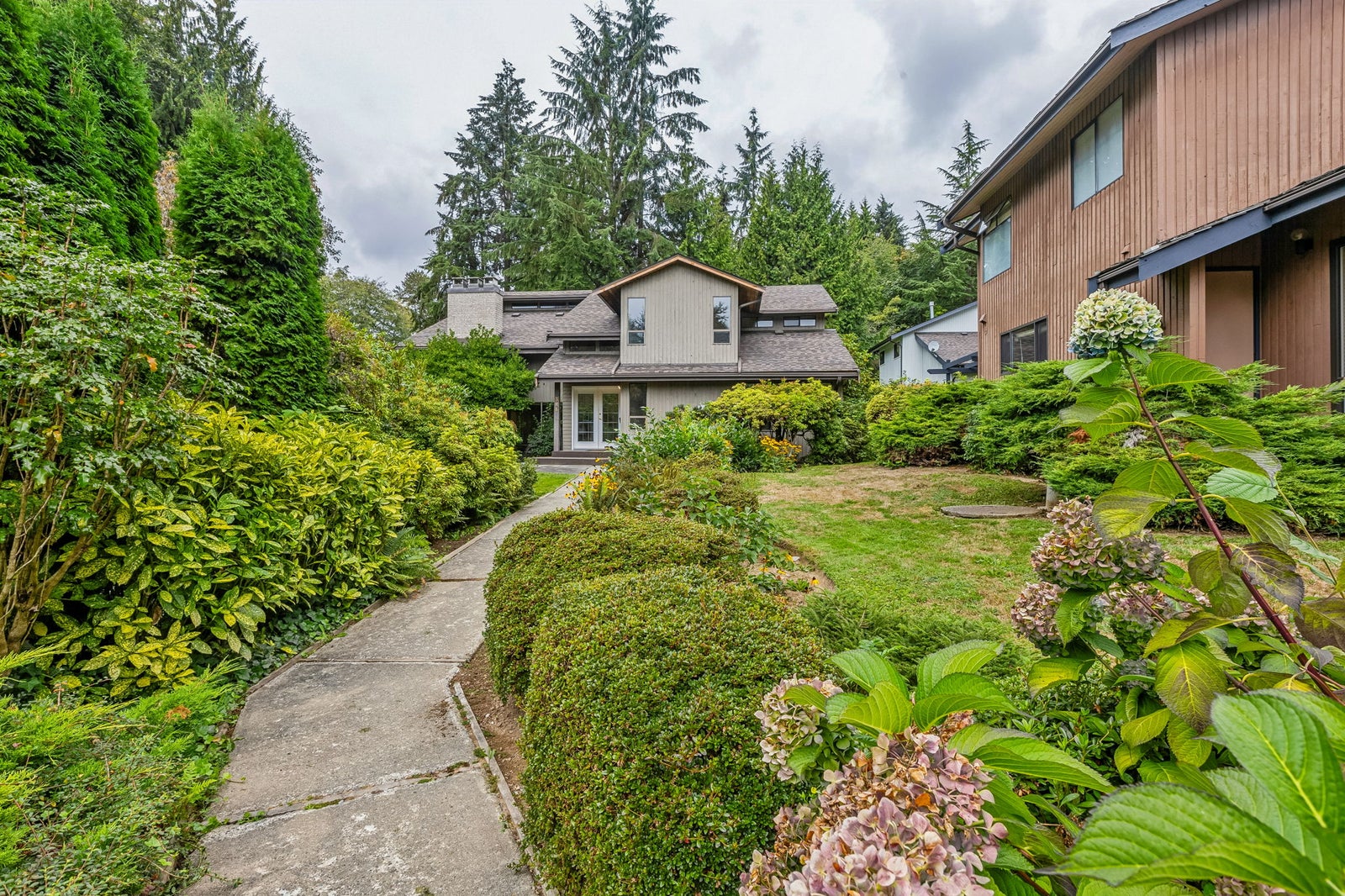 Rarely available in Mathers Mews, an exclusive enclave of 8 detached homes on 2.21 acres in the British Properties. This 3-bedroom + office home with vaulted ceilings and bright open living spaces offers incredible potential—bring your design ideas! Features include a formal living room with fireplace, elegant dining room, spacious kitchen, and cozy family room. With three bedrooms upstairs, the primary suite boasts a walk-in closet, spa-like ensuite, and private balcony. Enjoy a new roof, 2-car garage, shared tennis court, heated pool, and lush surroundings—all minutes to top schools, Park Royal & Lions Gate Bridge.