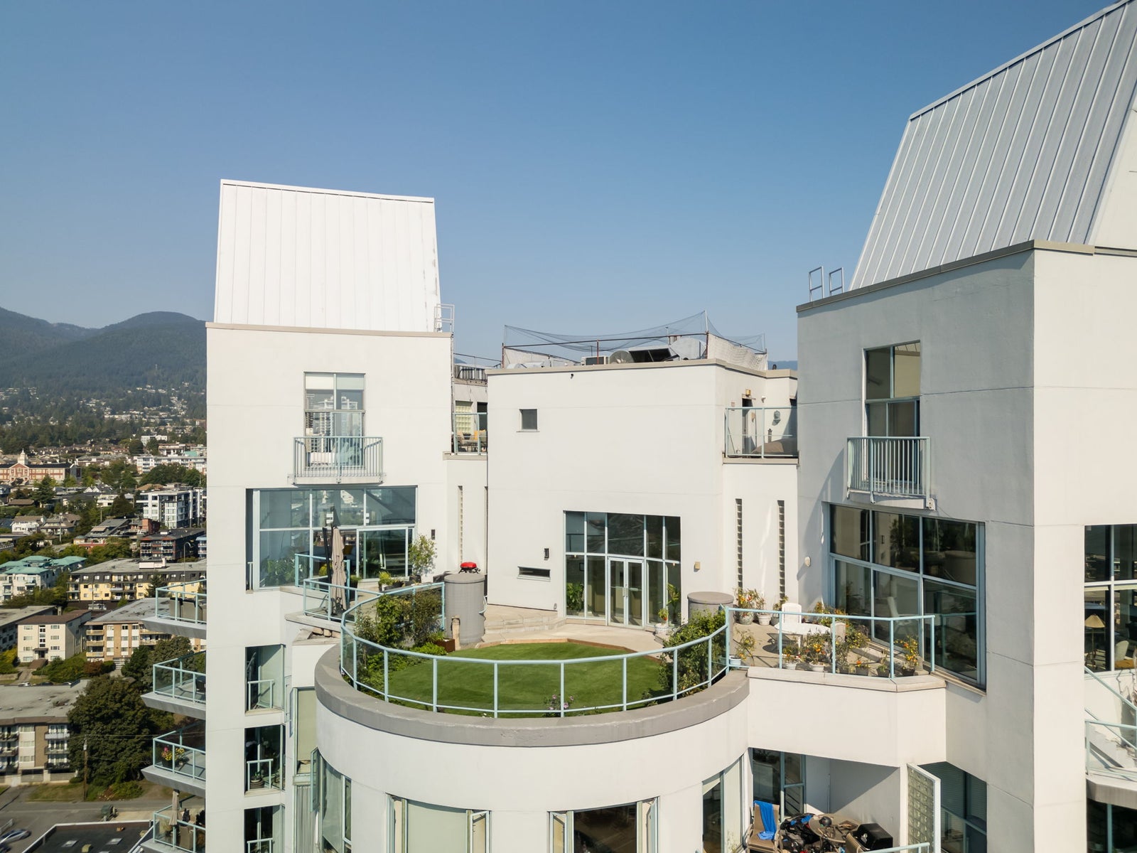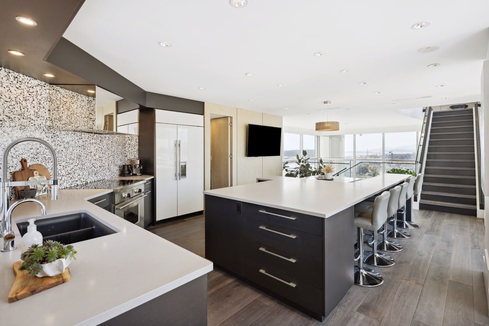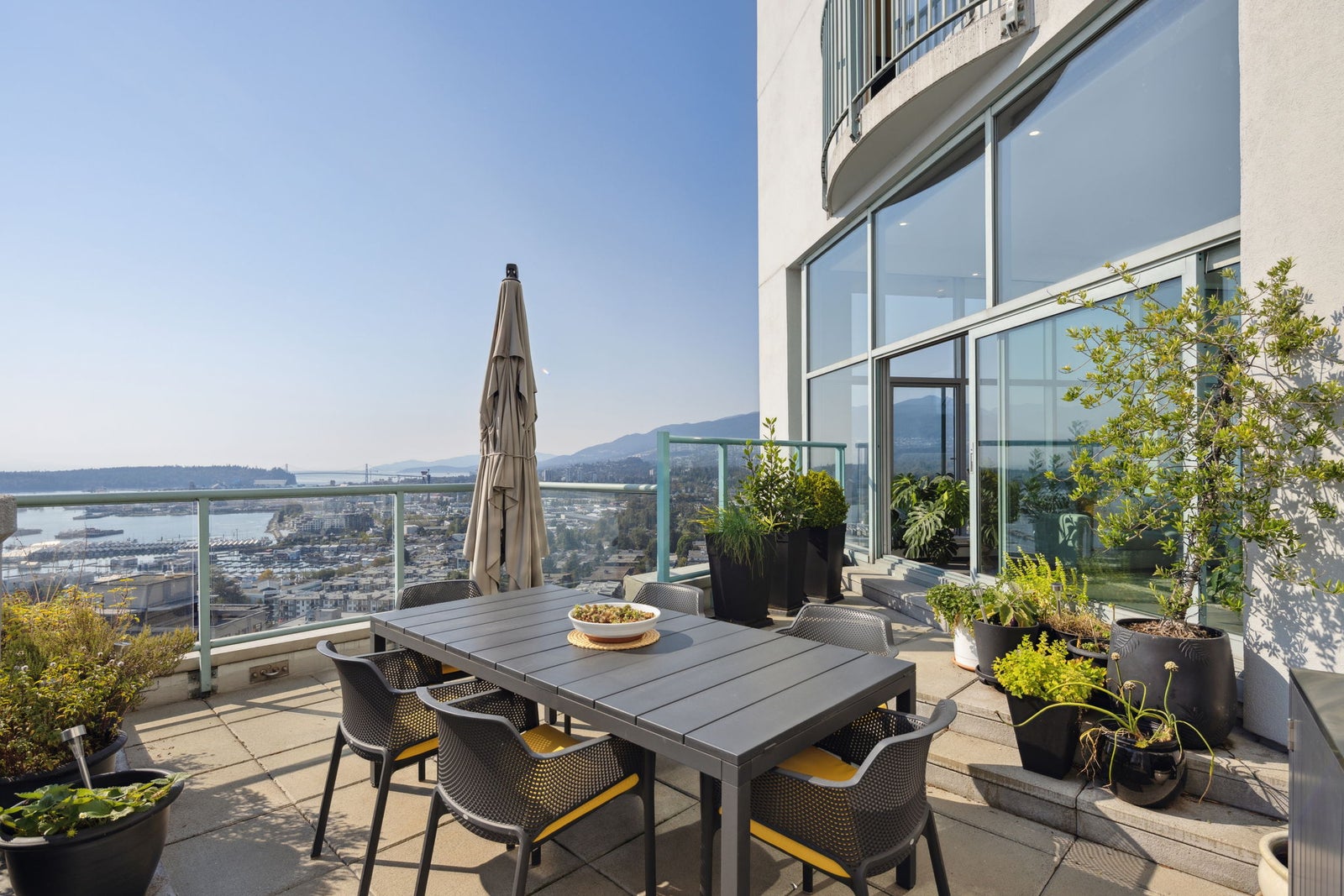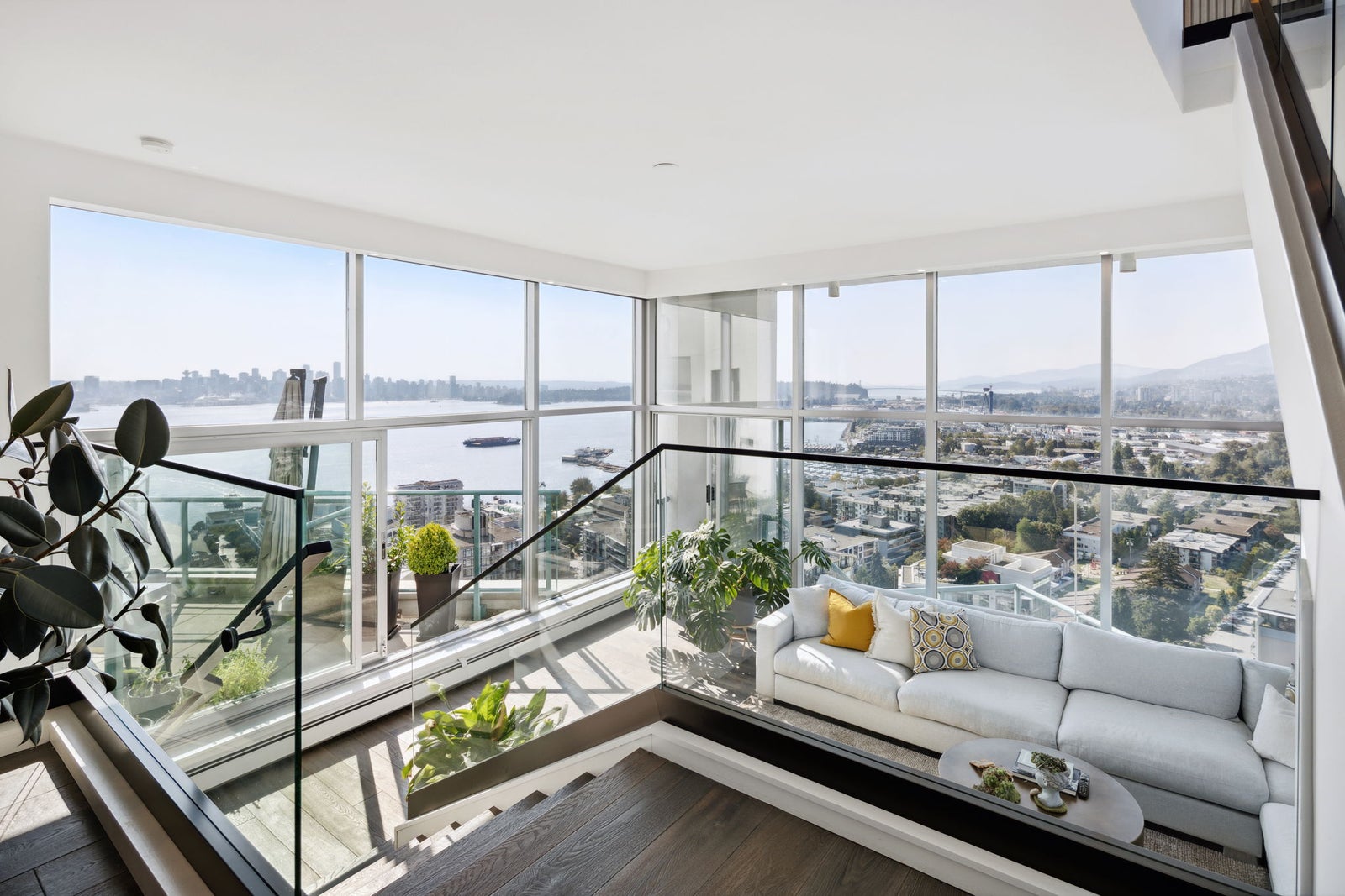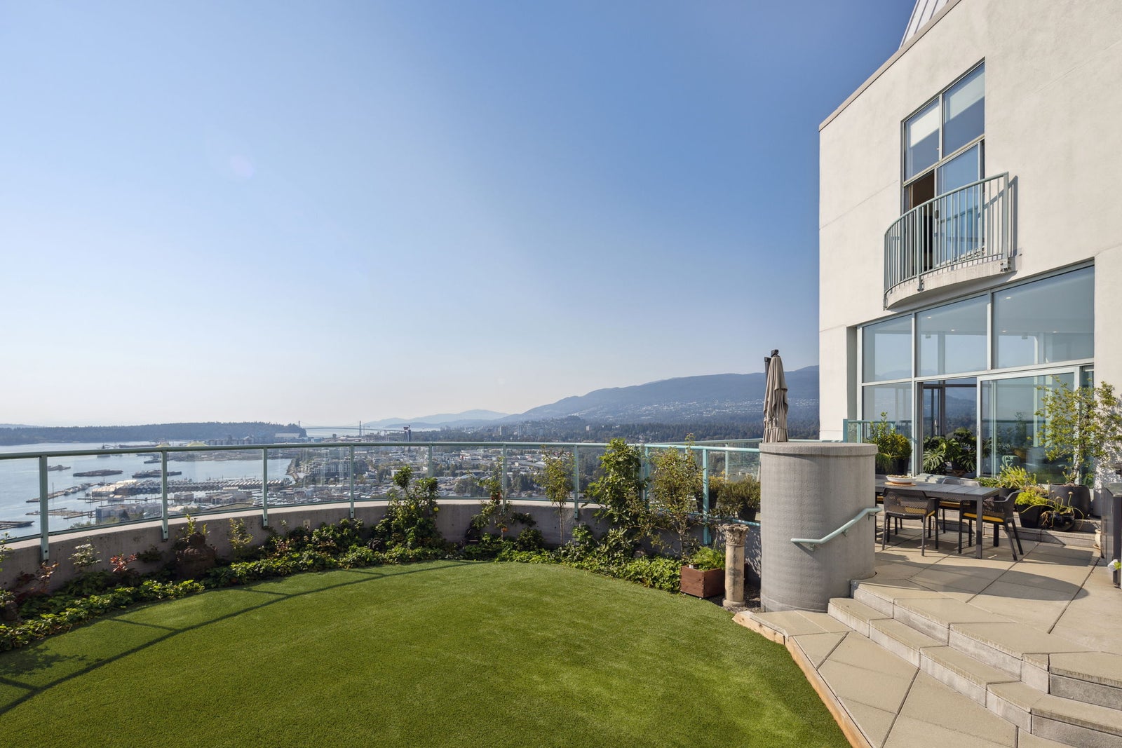 Indulge in unparalleled luxury with this penthouse at the Observatory. Floor-to-ceiling windows offer sweeping city and harbour views. This extensively renovated 2328 SF home spans four levels and features over 1500 SF of outdoor terraces. Highlights include a gourmet kitchen with a butler’s pantry, 12-foot ceilings, custom built-ins throughout, and four private outdoor spaces. The layout has two bedrooms on lower level and a top-floor master suite with a walk-in closet and spa-like en-suite. Enjoy vibrant Lower Lonsdale living with shops, restaurants, and entertainment at your doorstep. Includes 3 parking spots, ample storage, plus stunning gardens, a fitness centre, and a pool—it’s like living in a resort!